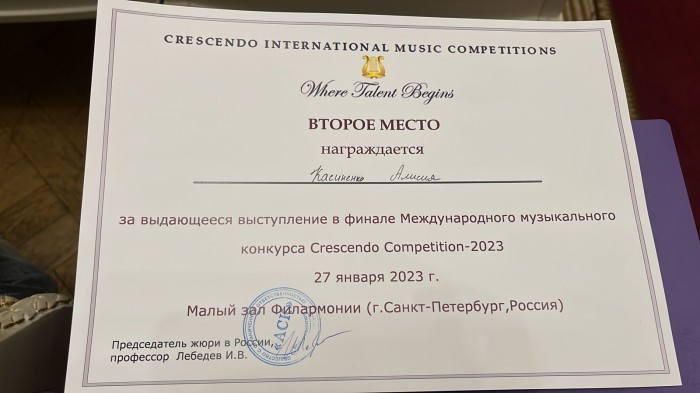 Участие в международном музыкальном конкурсе Crescendo Competition-2023